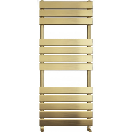 Queenstown Brushed Brass Designer Flat Panel Heated Towel Rail 1200x450mm