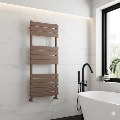 Queenstown Brushed Bronze Designer Flat Panel Heated Towel Rail 1200x450mm